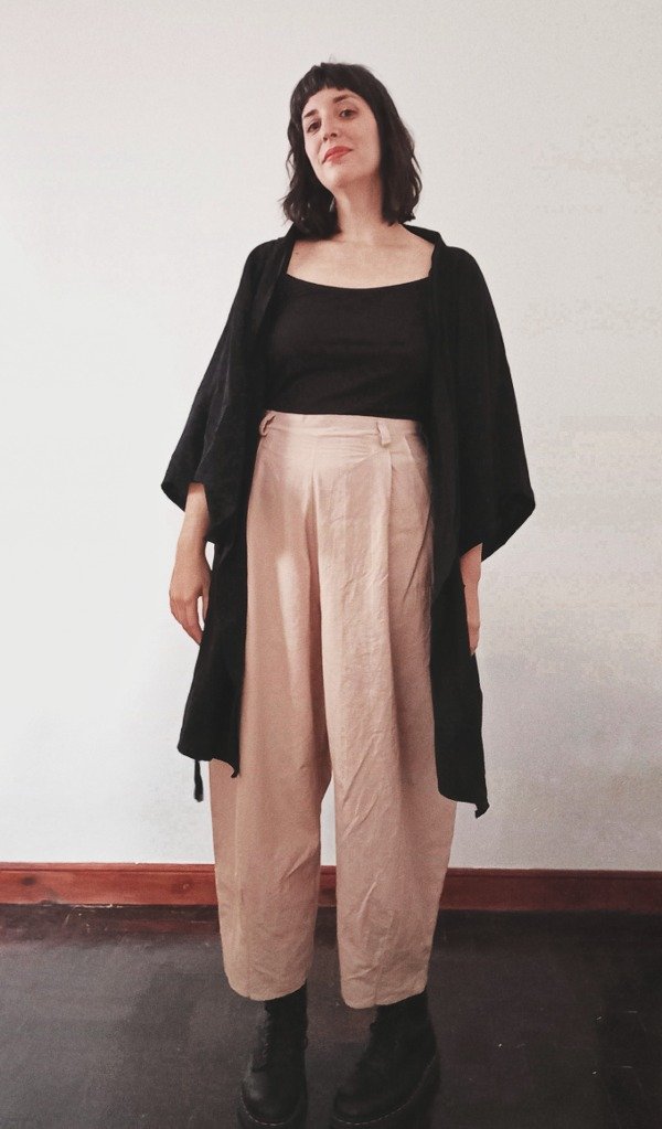 Es una prenda pensada para tener una caida envolvente, muy oversized, por eso sólo hay 3 talles, el S sería para alguien que normalmente usa S o M; el M, entre un L y XL y el L, 2 o 3XL. Colores disponibles negro, canela o rosa viejo (última foto para referencia).