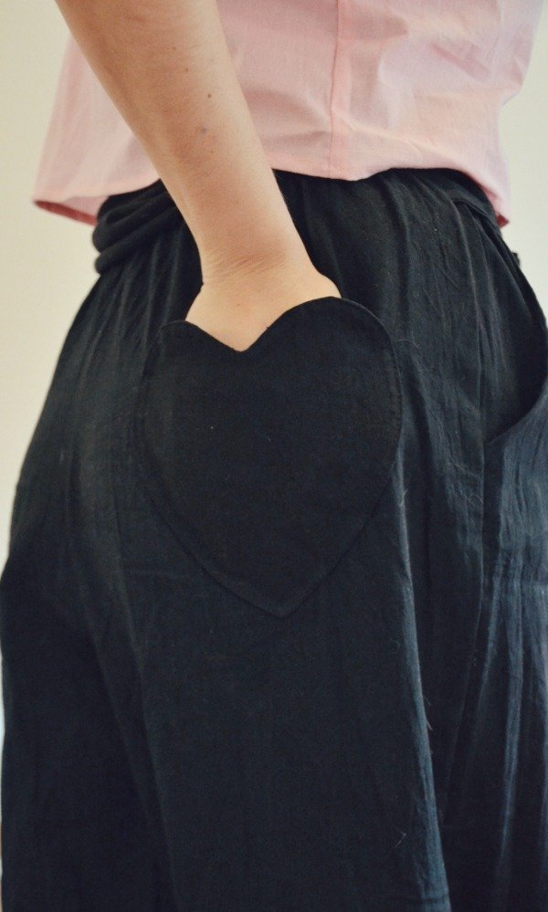 Elástico en toda la cintura y bolsillo trasero (con forma de corazón)