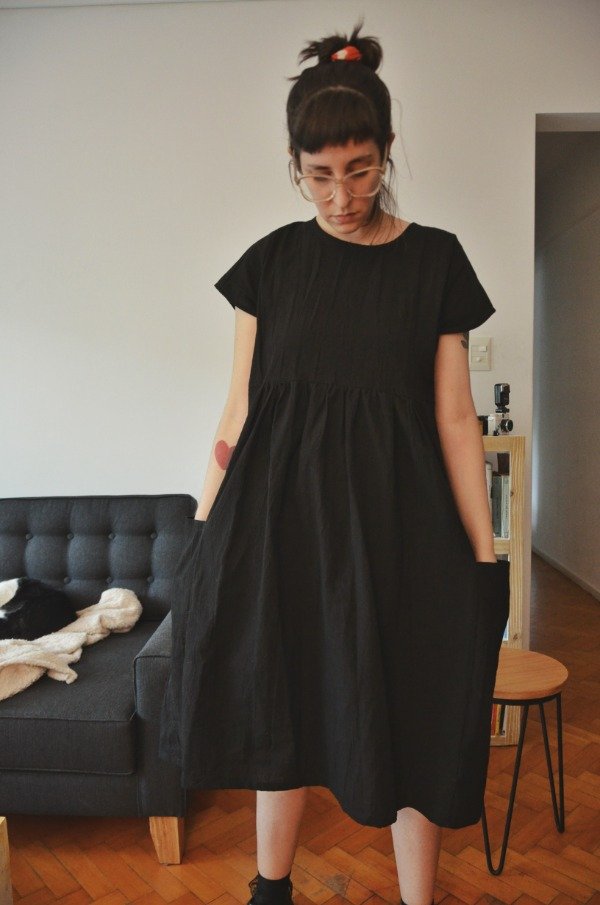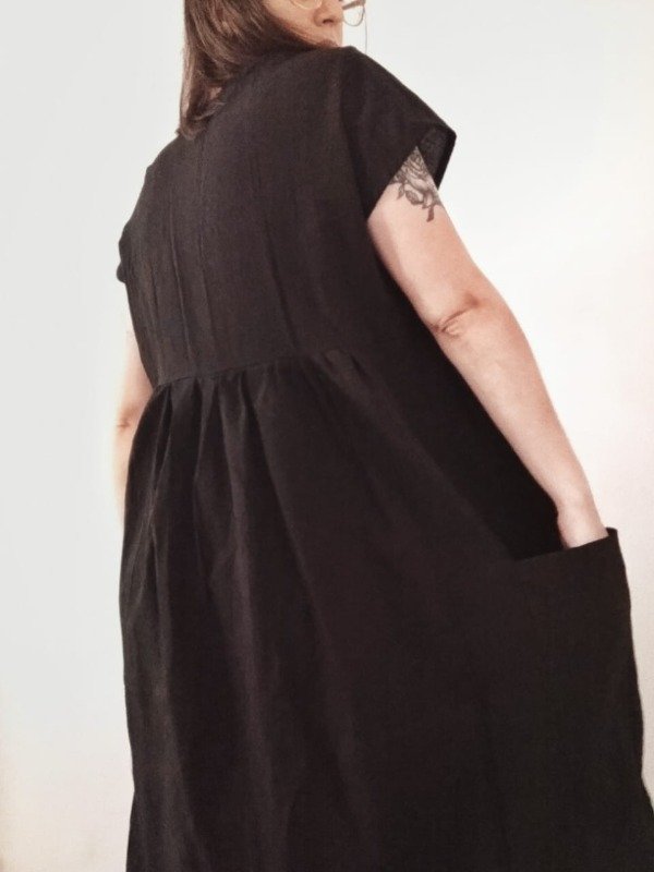 Vestido oversize de tusor manga corta, largo midi.